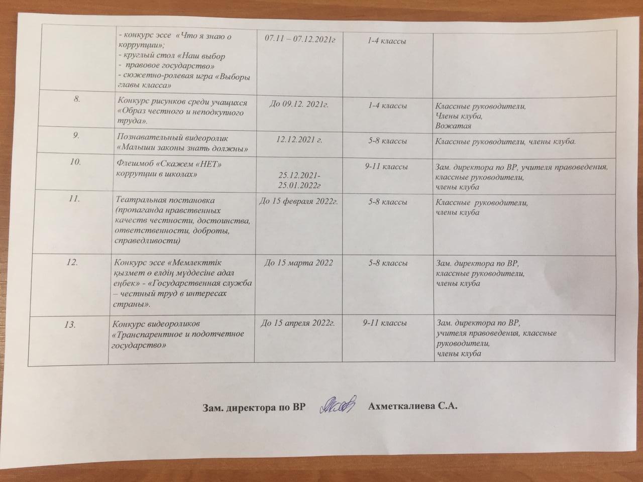 План работы школьного клуба "Адал Ұрпақ" на 2021-2022 учебный год » "№203 жалпы білім беретін мектеп" КММ