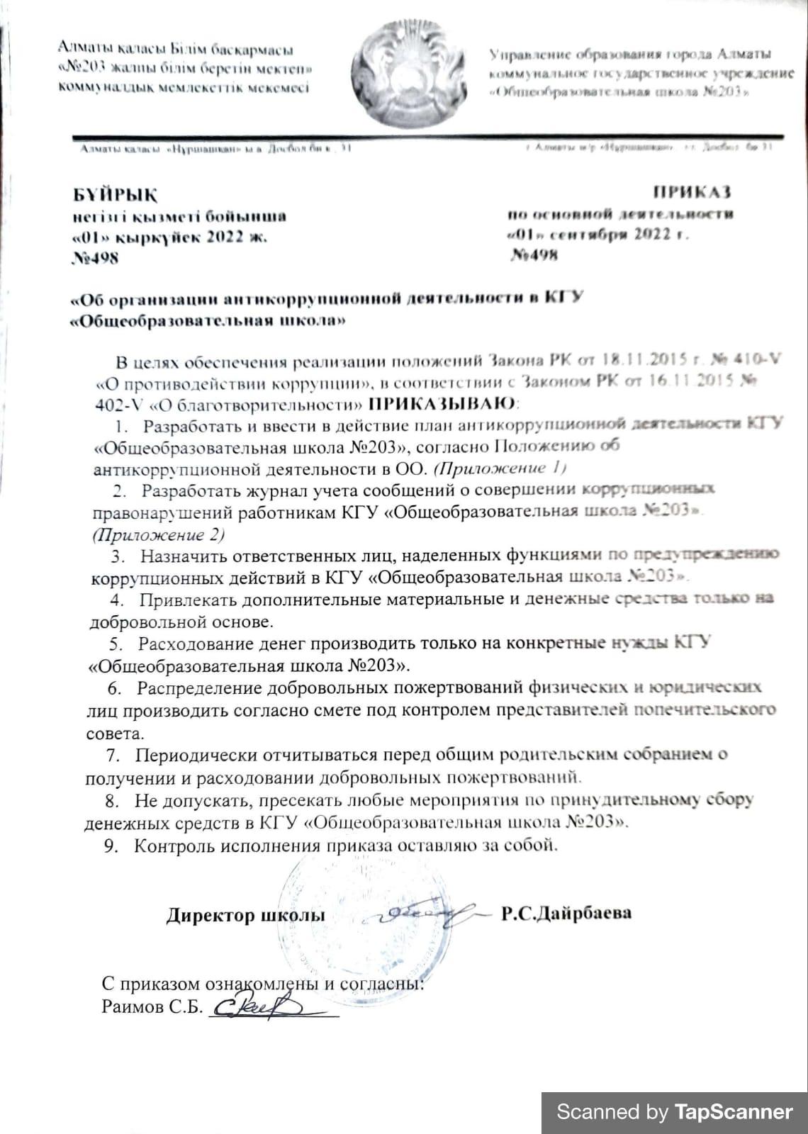 » » » Об организации антикаррупционный деятельности в КГУ "ОШ №203"