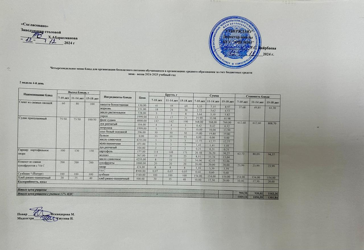 КҮНДЕЛІКТІ МЕНЮ/ ЕЖЕДНЕВНОЕ МЕНЮ » "№203 жалпы білім беретін мектеп" КММ