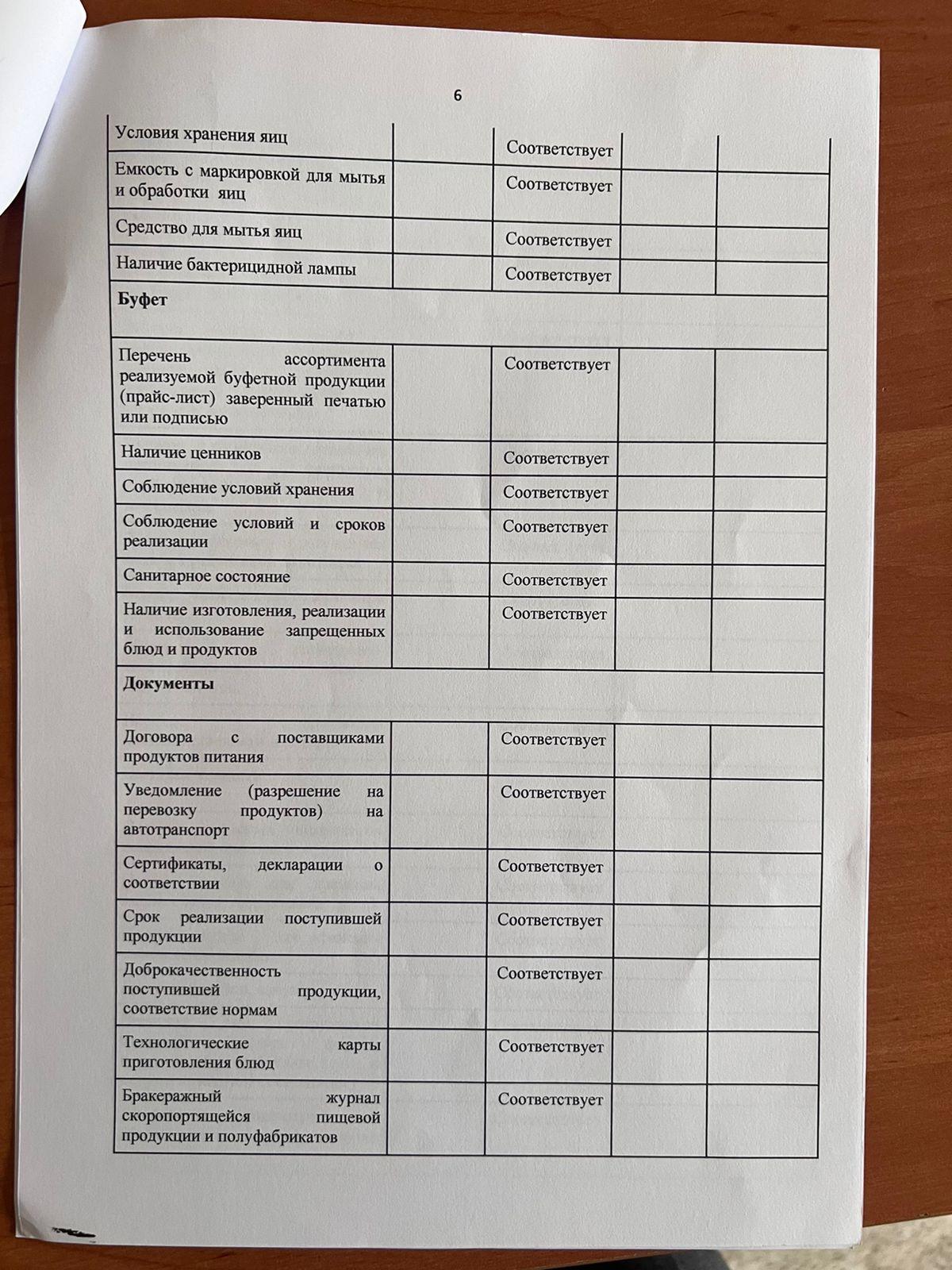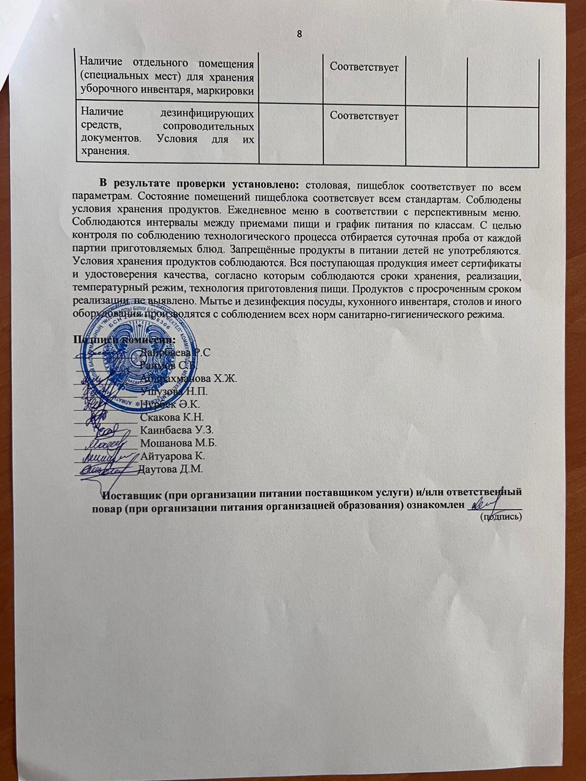 АКТ мониторинга качества питания » "№203 жалпы білім беретін мектеп" КММ