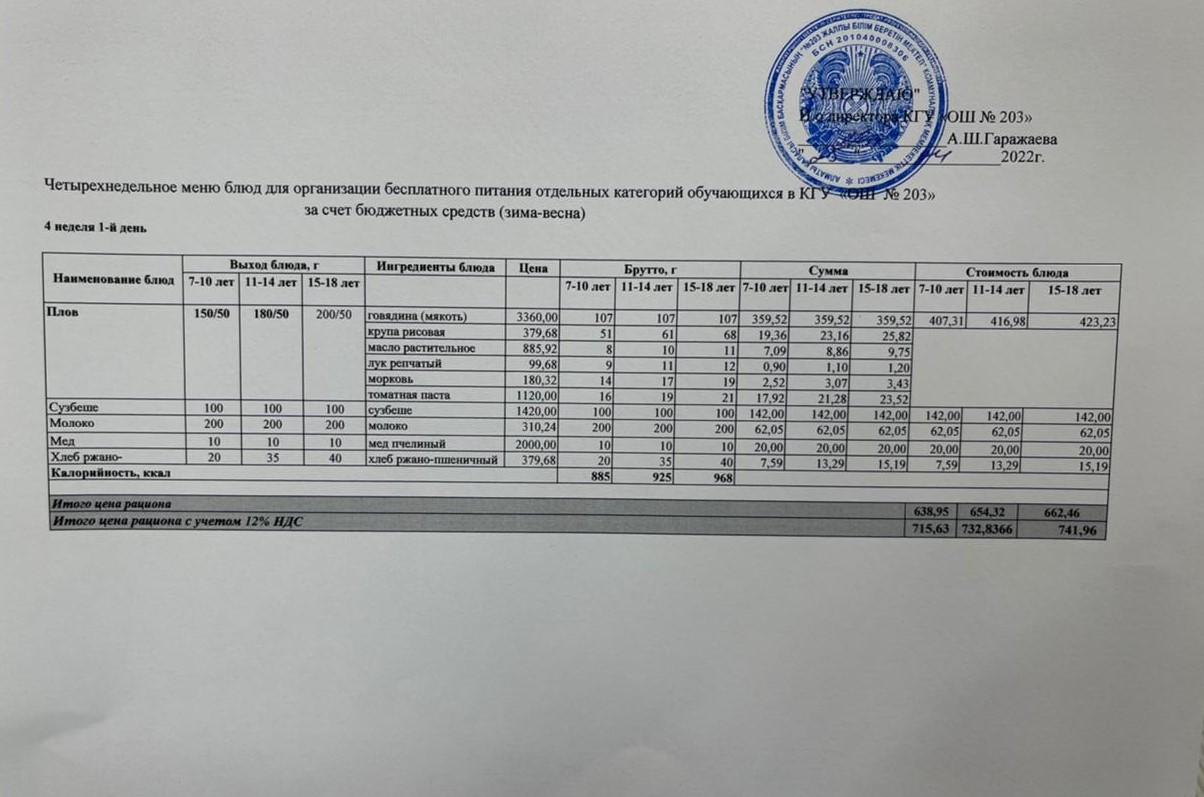 Ежедневное меню » "№203 жалпы білім беретін мектеп" КММ