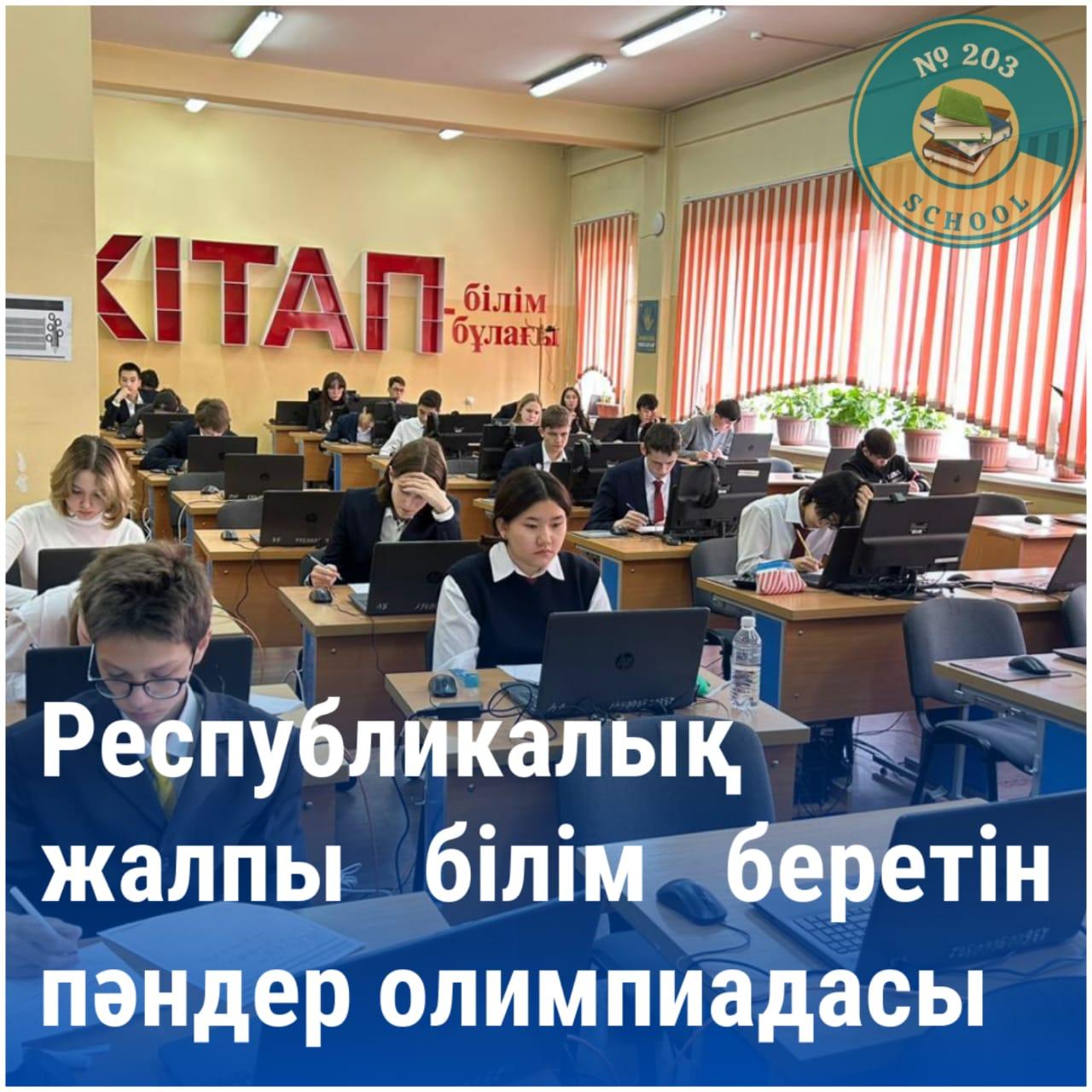 30 января в районном этапе Республиканской олимпиады общеобразовательных дисциплин учащиеся КГУ ОШ 203 приняли участие.По физике - М.Избакиева , ученица 9 " В" класса, математика - Ташимбеков Арнур 10" Б" , Сарпекова Азиза 9 " Б" класс