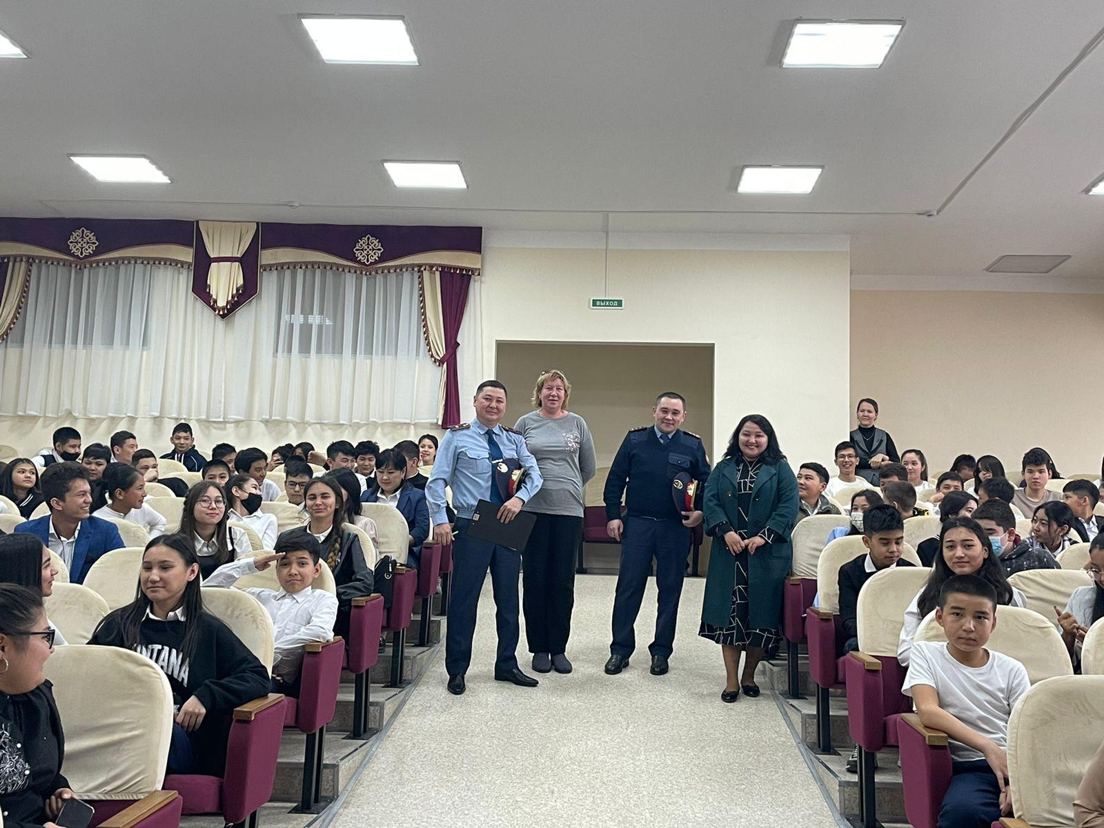 04.04.2022 ж. мектебімізге аудандық полиция бөлімшесінен полиция қызмекткерлері келіп "Жол жүру ережесі" жайлы баяндама жасады. Баяндаманы 5-11 сынып оқушылары толық тыңдап, көкейлерінде жүрген сұрақтарды қойып жауап алды. МАИ қызметкерлеріне рақмет, жұмыстарыңыз табысты болғай!