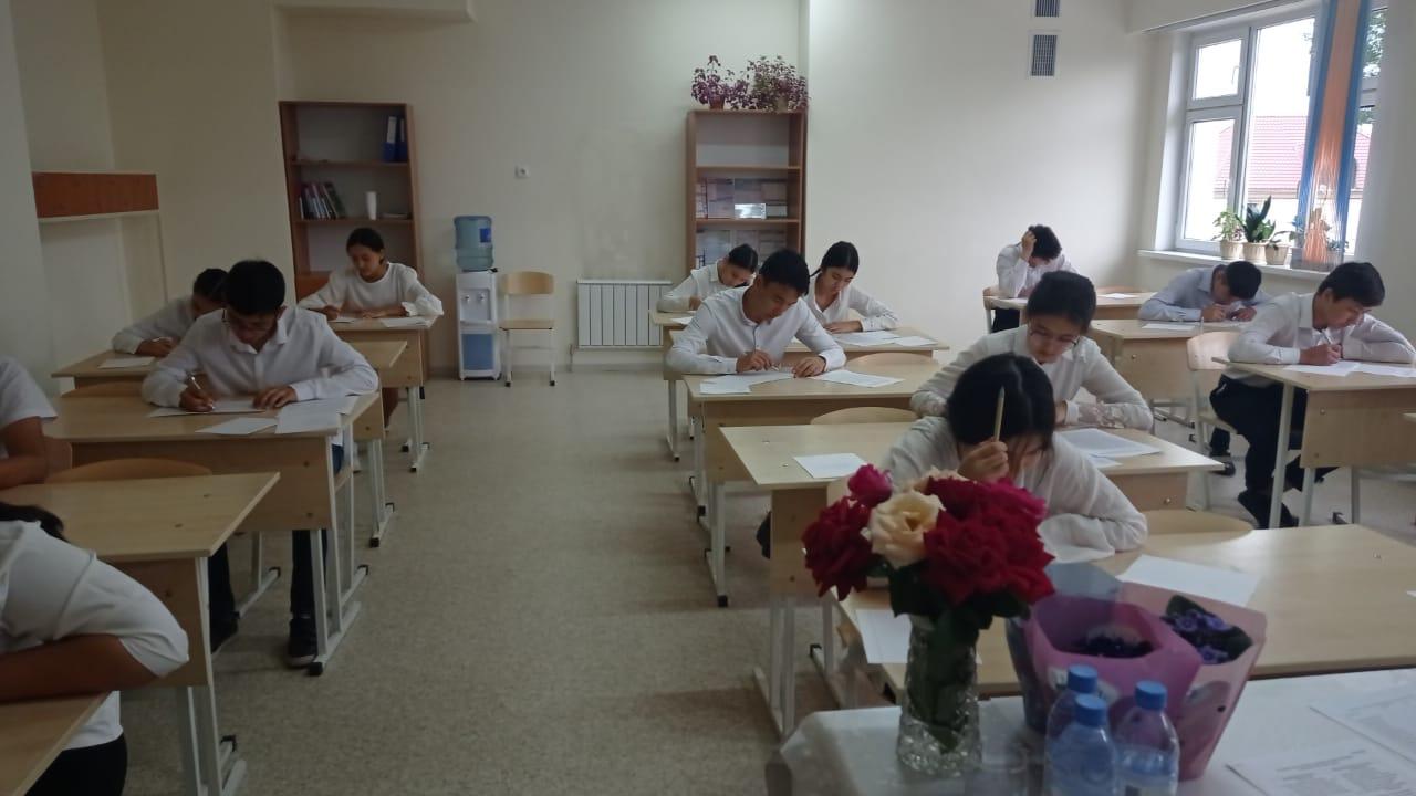 Сегодня в нашей школе 9-классники, которые вот-вот закончат школу, сдали экзамены по первым предметам. Казахский класс сдал письменный экзамен по предмету «Казахский язык», а русский класс сдал письменный экзамен по предмету «Русский язык».