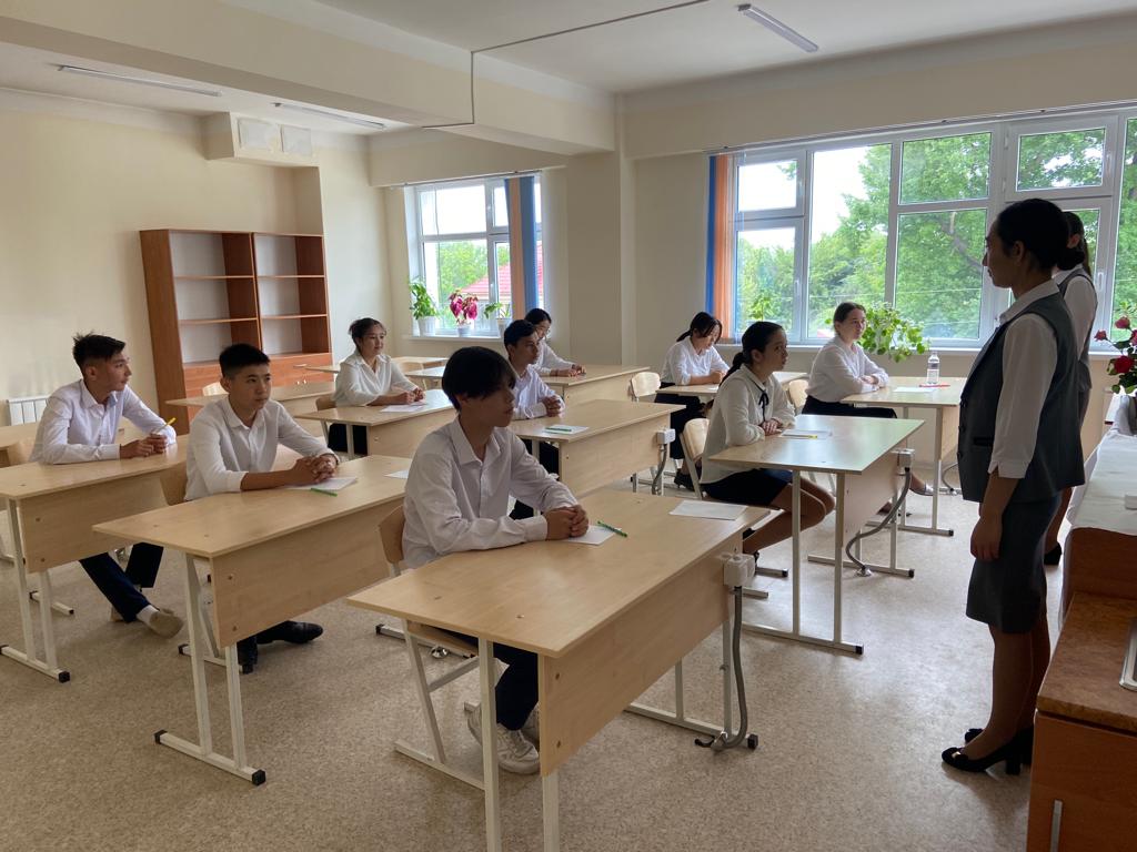 Бүгін мектебімізде орта мектепті аяқтағалы тұрған 9 сыныптар алғашқы пәндері бойынша емтихан тапсырды. Қазақ сыныбы "Қазақ тілі" пәні бойынша, ал орыс сыныбы "Орыс тілі" пәні бойынша жазбаша түрде емтихан тапсырды.