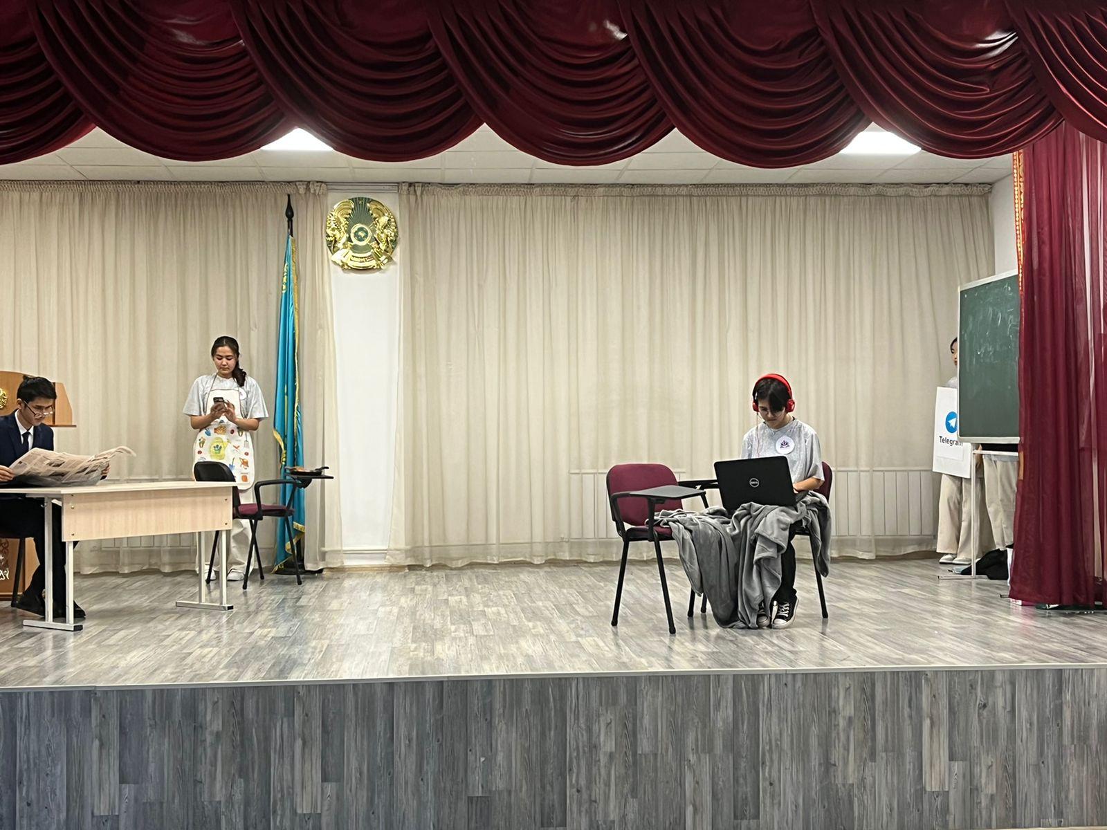 Қазақ тілі мен әдебиеті пәні мұғалімі Айзада Серікқызының жетекшілігімен мектебіміздің жоғары сынып оқушылары аудандық “Біздің “ЖОҚ” дегеніміздің маңызы бар” атты әлеуметтік жобаға мектеп атынан шығып, “Виртуалды өмір және шынайы өмір: оң мен теріс жақтары” атты көрініс сомдады.