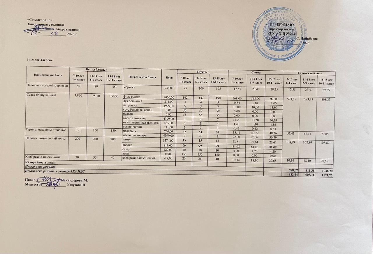 КҮНДЕЛІКТІ МЕНЮ/ ЕЖЕДНЕВНОЕ МЕНЮ » "№203 жалпы білім беретін мектеп" КММ