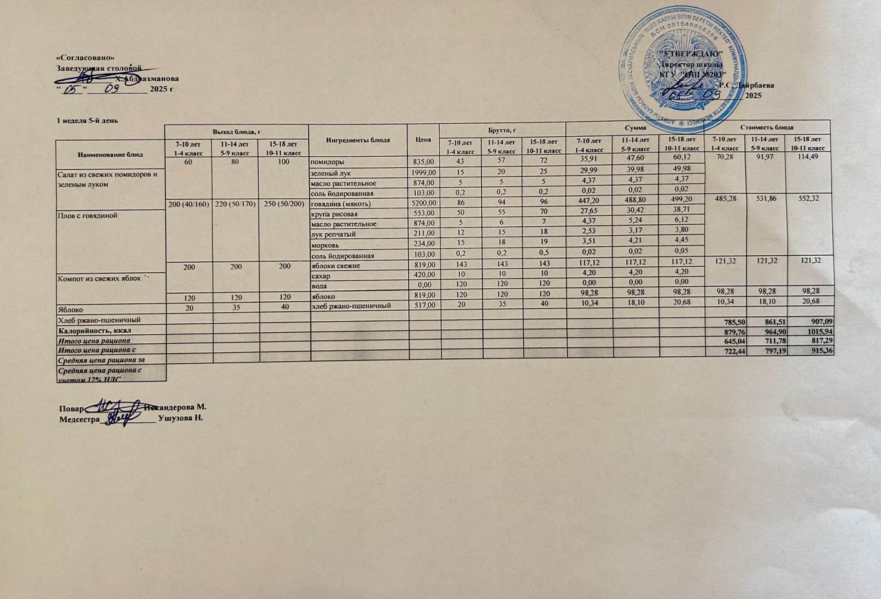 » » КҮНДЕЛІКТІ МЕНЮ/ ЕЖЕДНЕВНОЕ МЕНЮ