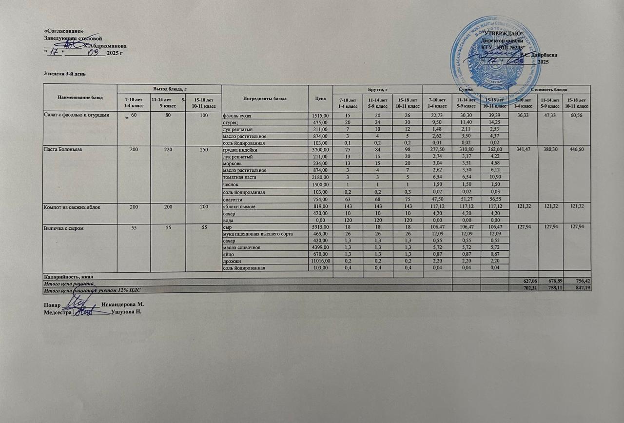 КҮНДЕЛІКТІ МЕНЮ/ ЕЖЕДНЕВНОЕ МЕНЮ » "№203 жалпы білім беретін мектеп" КММ