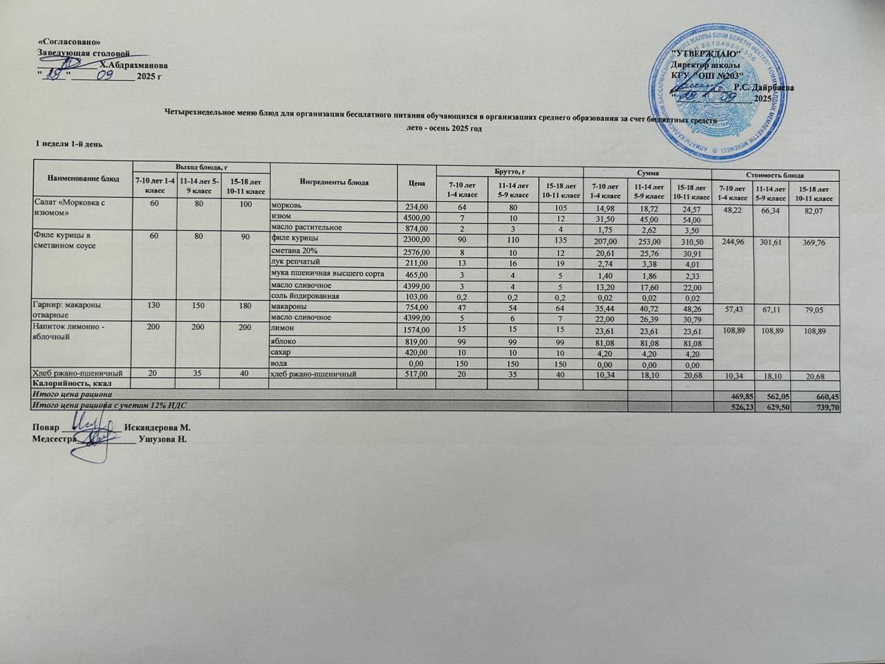 КҮНДЕЛІКТІ МЕНЮ/ ЕЖЕДНЕВНОЕ МЕНЮ » "№203 жалпы білім беретін мектеп" КММ