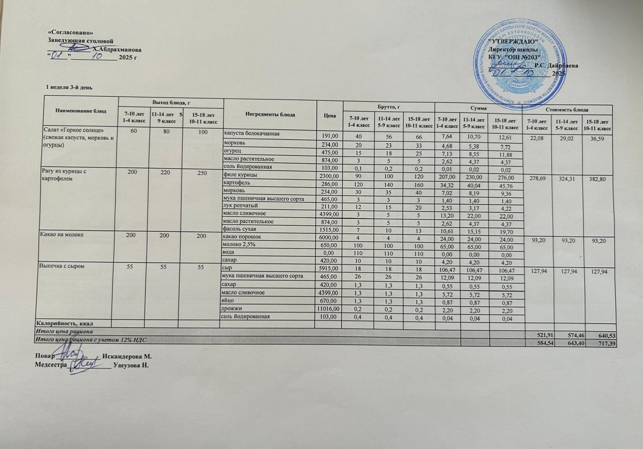 КҮНДЕЛІКТІ МЕНЮ/ ЕЖЕДНЕВНОЕ МЕНЮ » "№203 жалпы білім беретін мектеп" КММ