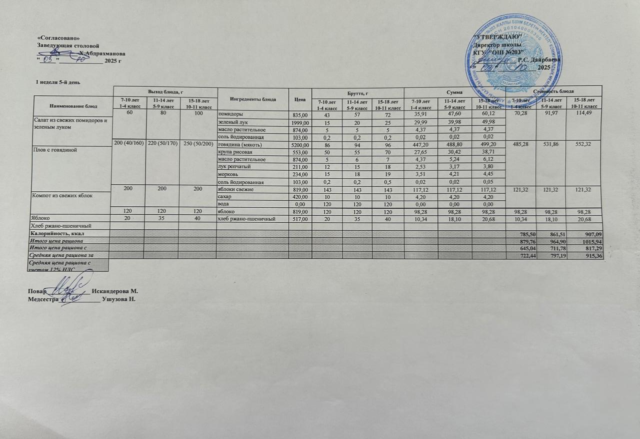 КҮНДЕЛІКТІ МЕНЮ/ ЕЖЕДНЕВНОЕ МЕНЮ » "№203 жалпы білім беретін мектеп" КММ