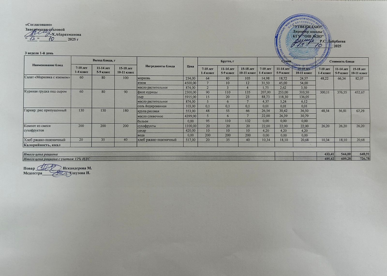 КҮНДЕЛІКТІ МЕНЮ/ ЕЖЕДНЕВНОЕ МЕНЮ » "№203 жалпы білім беретін мектеп" КММ