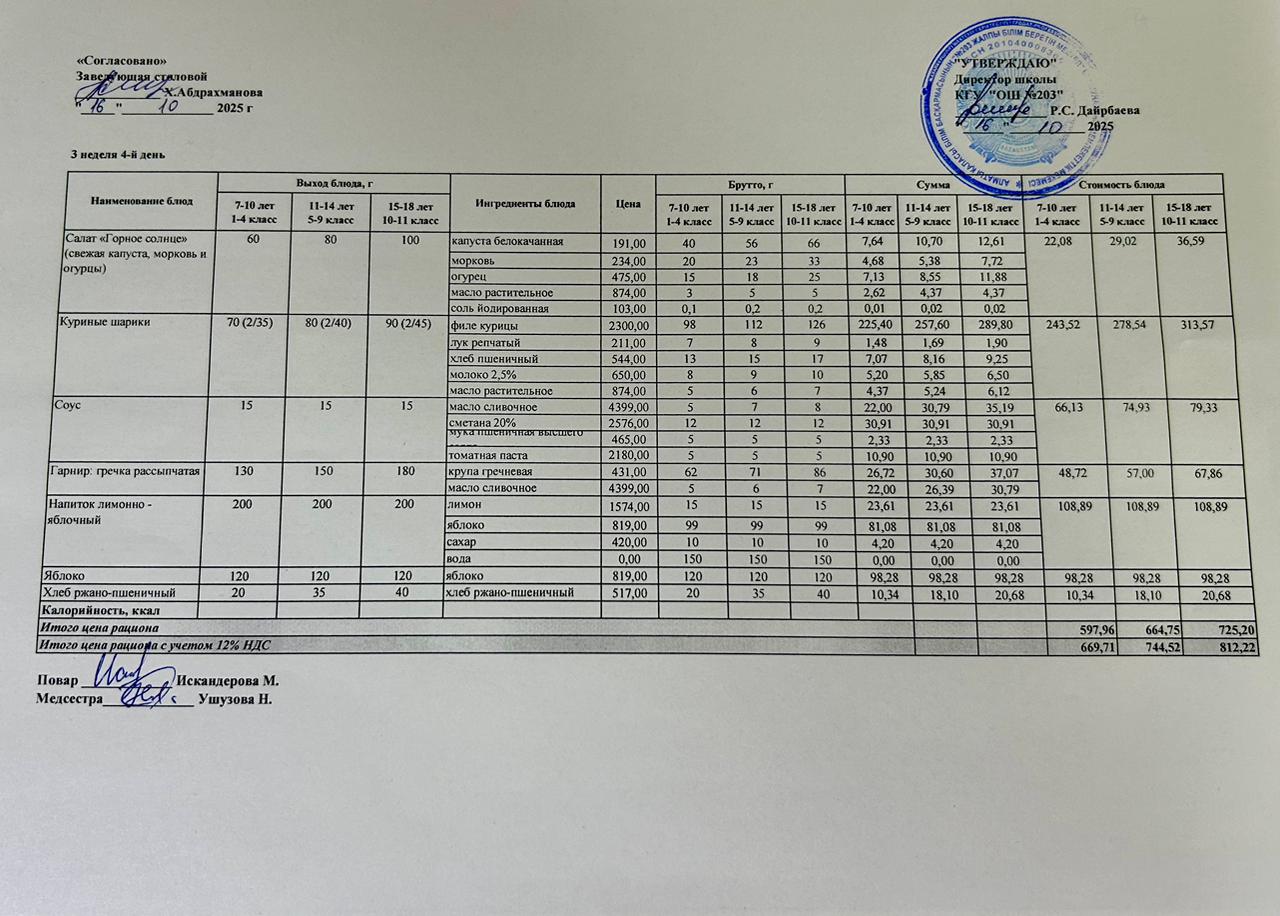 КҮНДЕЛІКТІ МЕНЮ/ ЕЖЕДНЕВНОЕ МЕНЮ » "№203 жалпы білім беретін мектеп" КММ