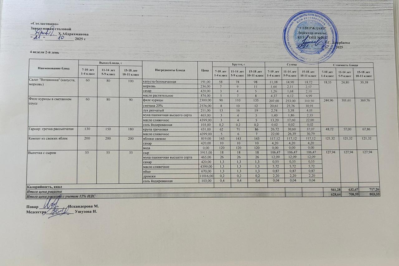 КҮНДЕЛІКТІ МЕНЮ/ ЕЖЕДНЕВНОЕ МЕНЮ » "№203 жалпы білім беретін мектеп" КММ