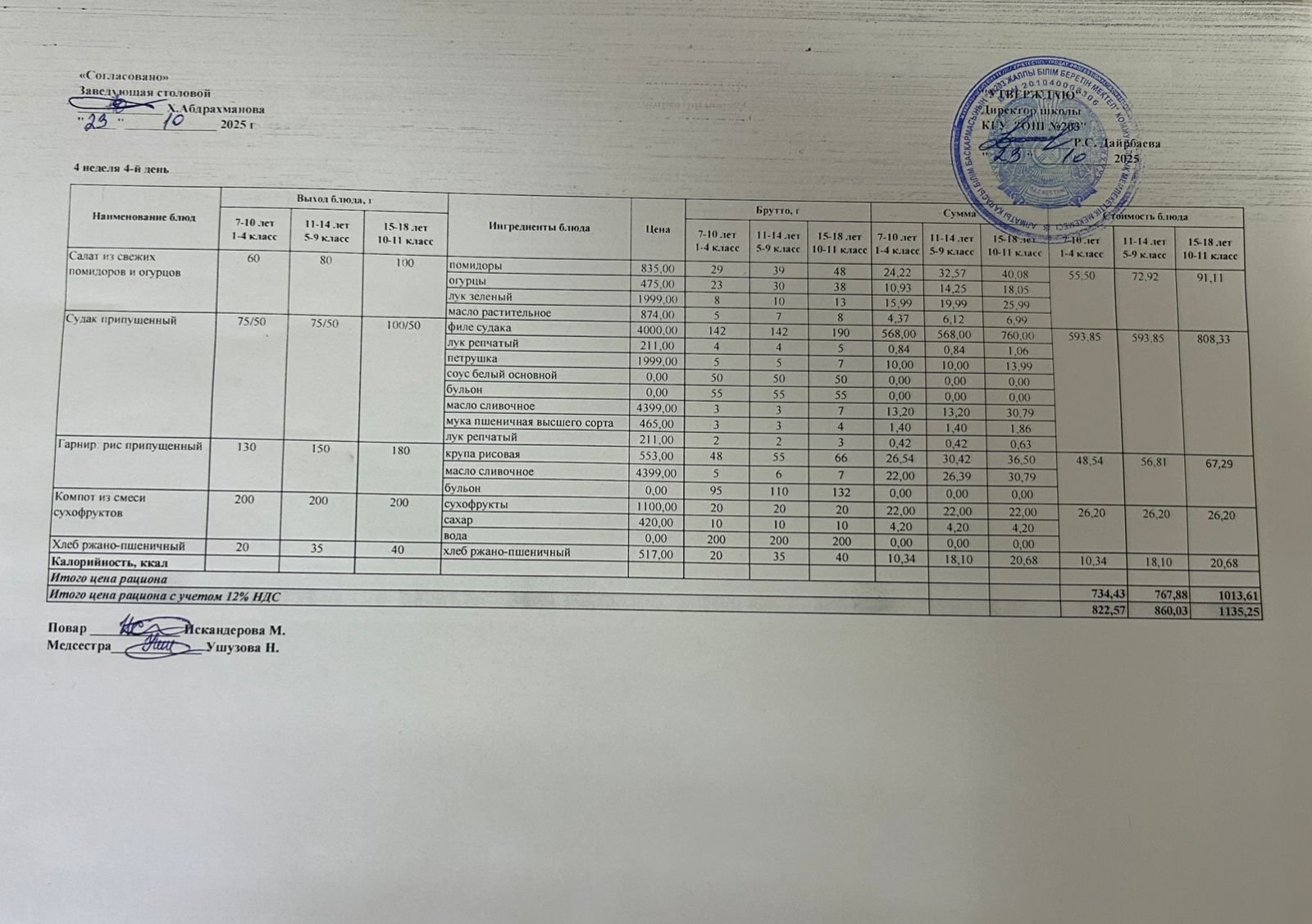 КҮНДЕЛІКТІ МЕНЮ/ ЕЖЕДНЕВНОЕ МЕНЮ » "№203 жалпы білім беретін мектеп" КММ