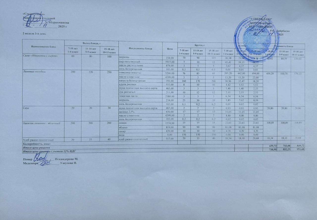 КҮНДЕЛІКТІ МЕНЮ/ ЕЖЕДНЕВНОЕ МЕНЮ » "№203 жалпы білім беретін мектеп" КММ