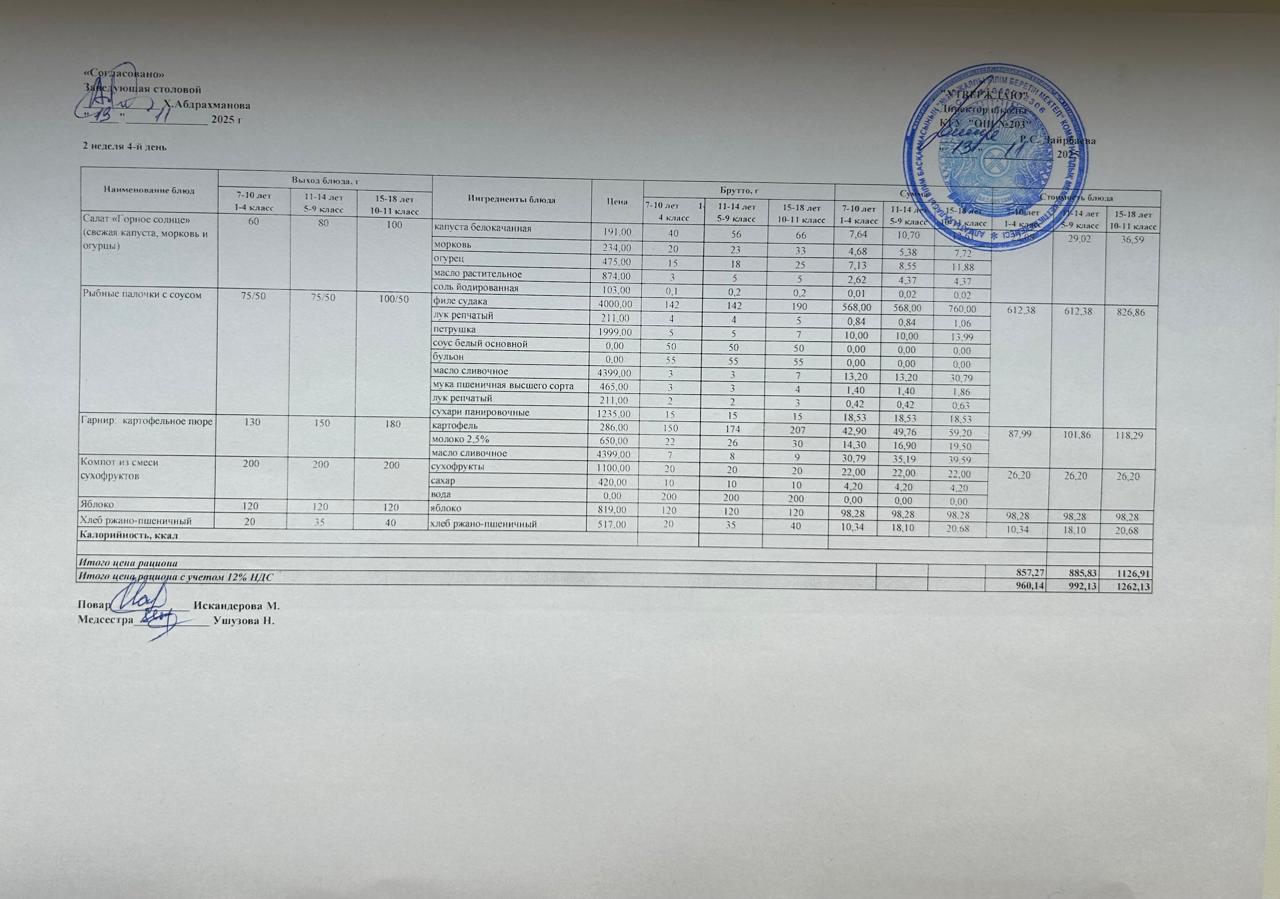КҮНДЕЛІКТІ МЕНЮ/ ЕЖЕДНЕВНОЕ МЕНЮ » "№203 жалпы білім беретін мектеп" КММ