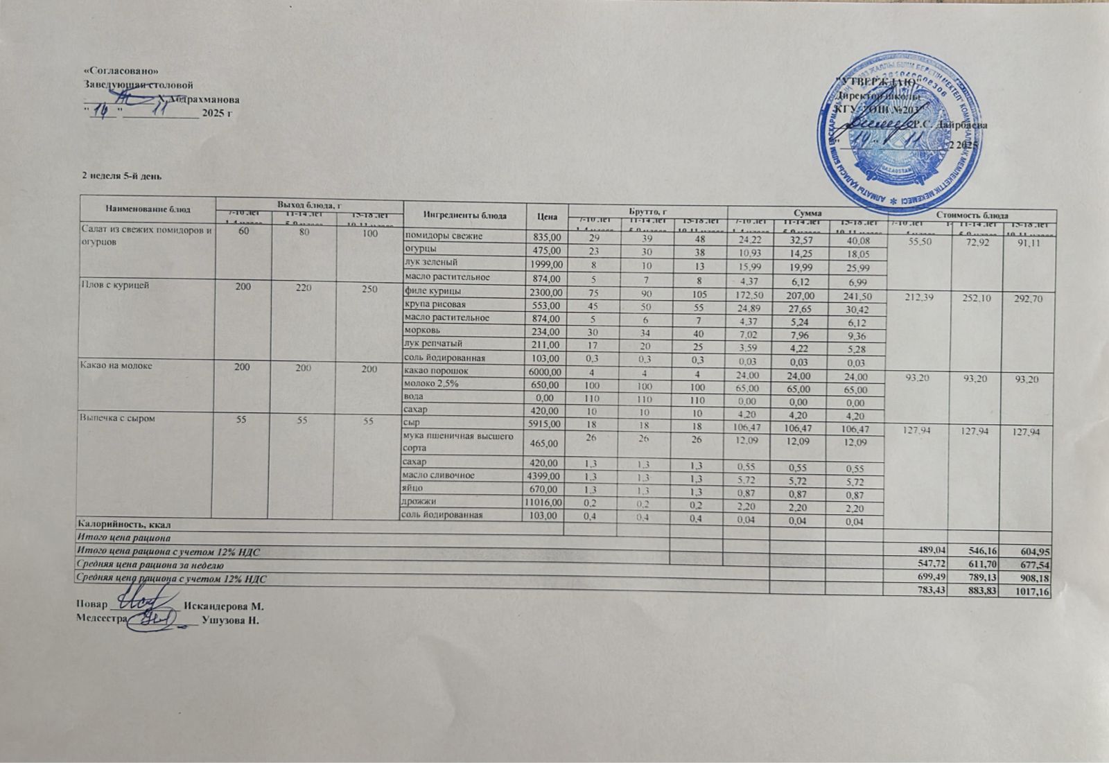КҮНДЕЛІКТІ МЕНЮ/ ЕЖЕДНЕВНОЕ МЕНЮ » "№203 жалпы білім беретін мектеп" КММ