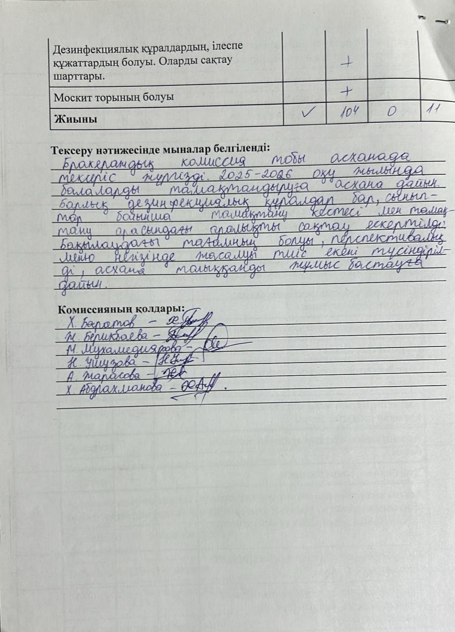Акт бракеражной комиссии » "№203 жалпы білім беретін мектеп" КММ