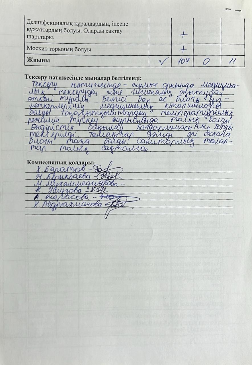 Акт бракеражной комиссии » "№203 жалпы білім беретін мектеп" КММ