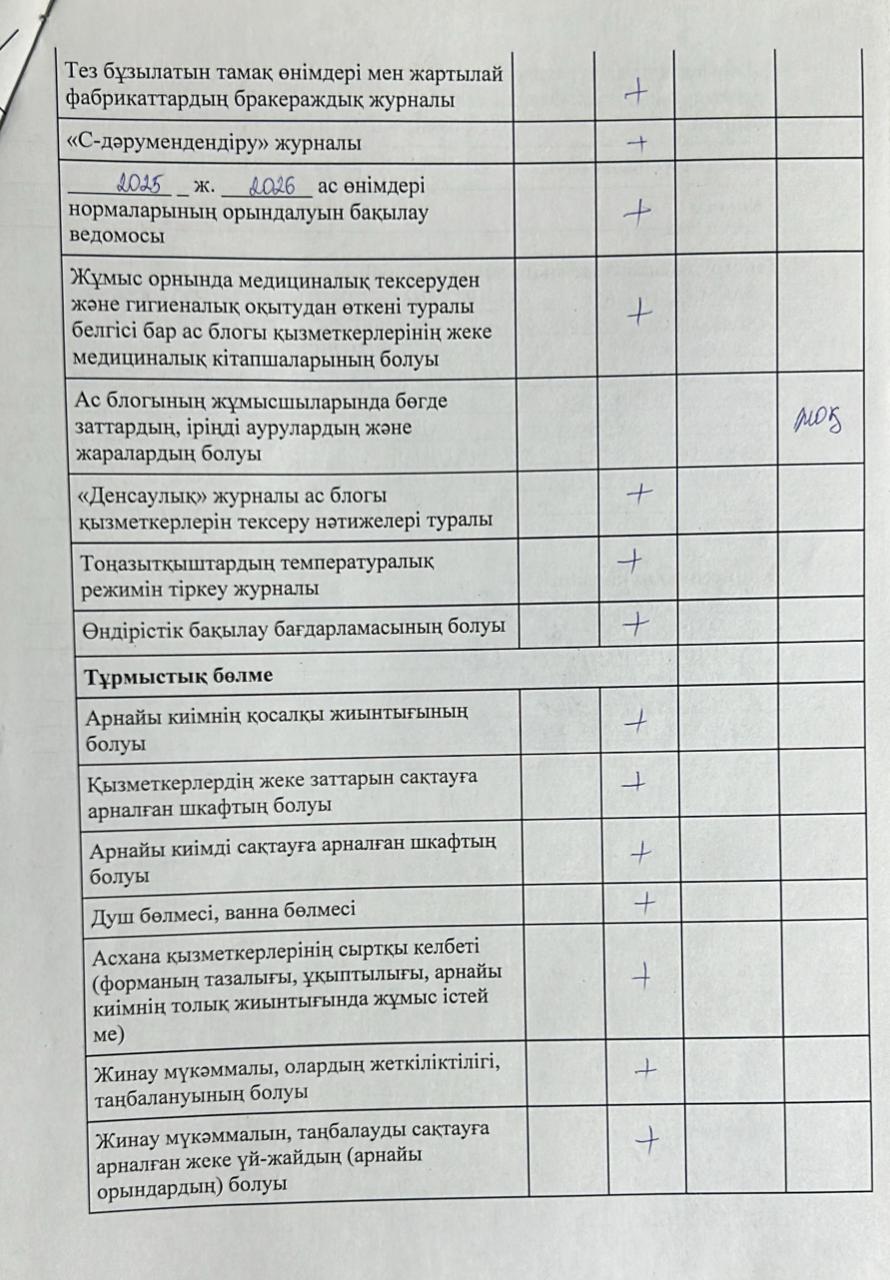 Акт бракеражной комиссии » "№203 жалпы білім беретін мектеп" КММ