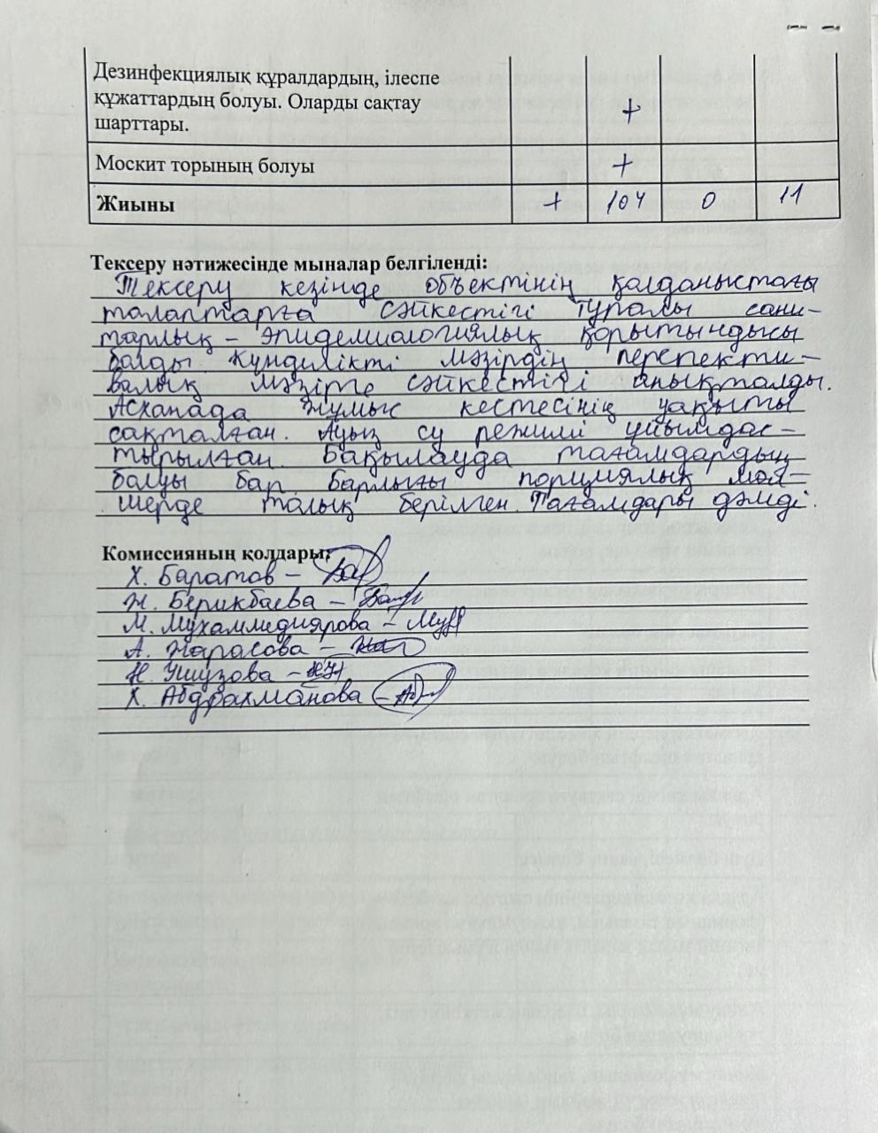 Акт бракеражной комиссии » "№203 жалпы білім беретін мектеп" КММ