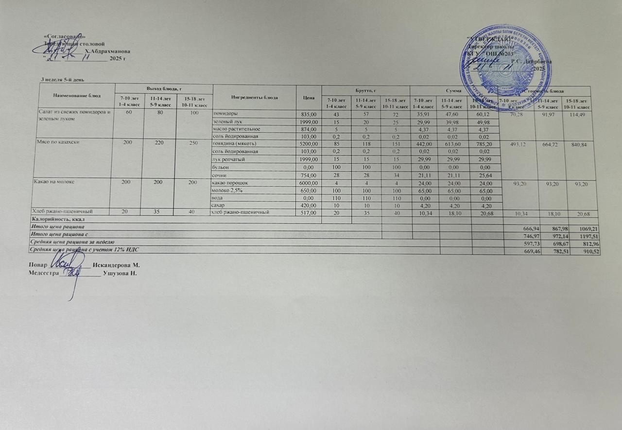 КҮНДЕЛІКТІ МЕНЮ/ ЕЖЕДНЕВНОЕ МЕНЮ » "№203 жалпы білім беретін мектеп" КММ