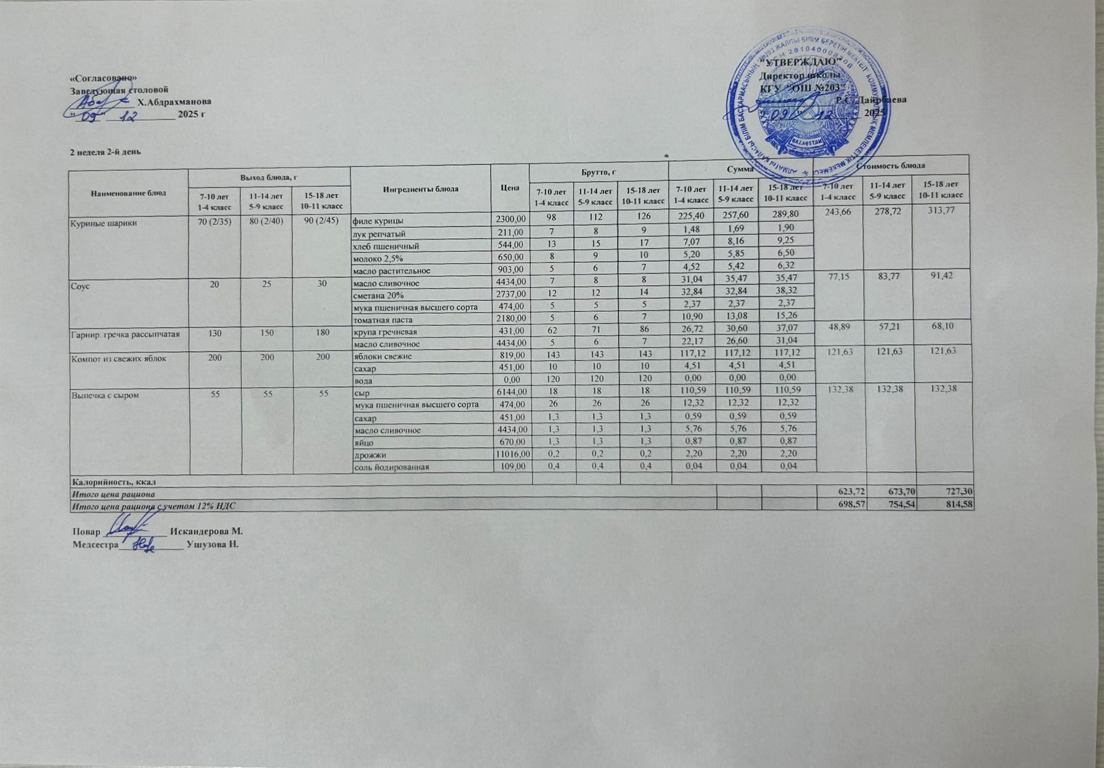 КҮНДЕЛІКТІ МЕНЮ/ ЕЖЕДНЕВНОЕ МЕНЮ » "№203 жалпы білім беретін мектеп" КММ