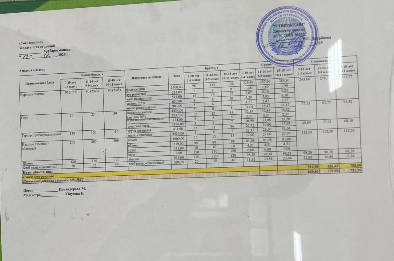 КҮНДЕЛІКТІ МЕНЮ/ ЕЖЕДНЕВНОЕ МЕНЮ