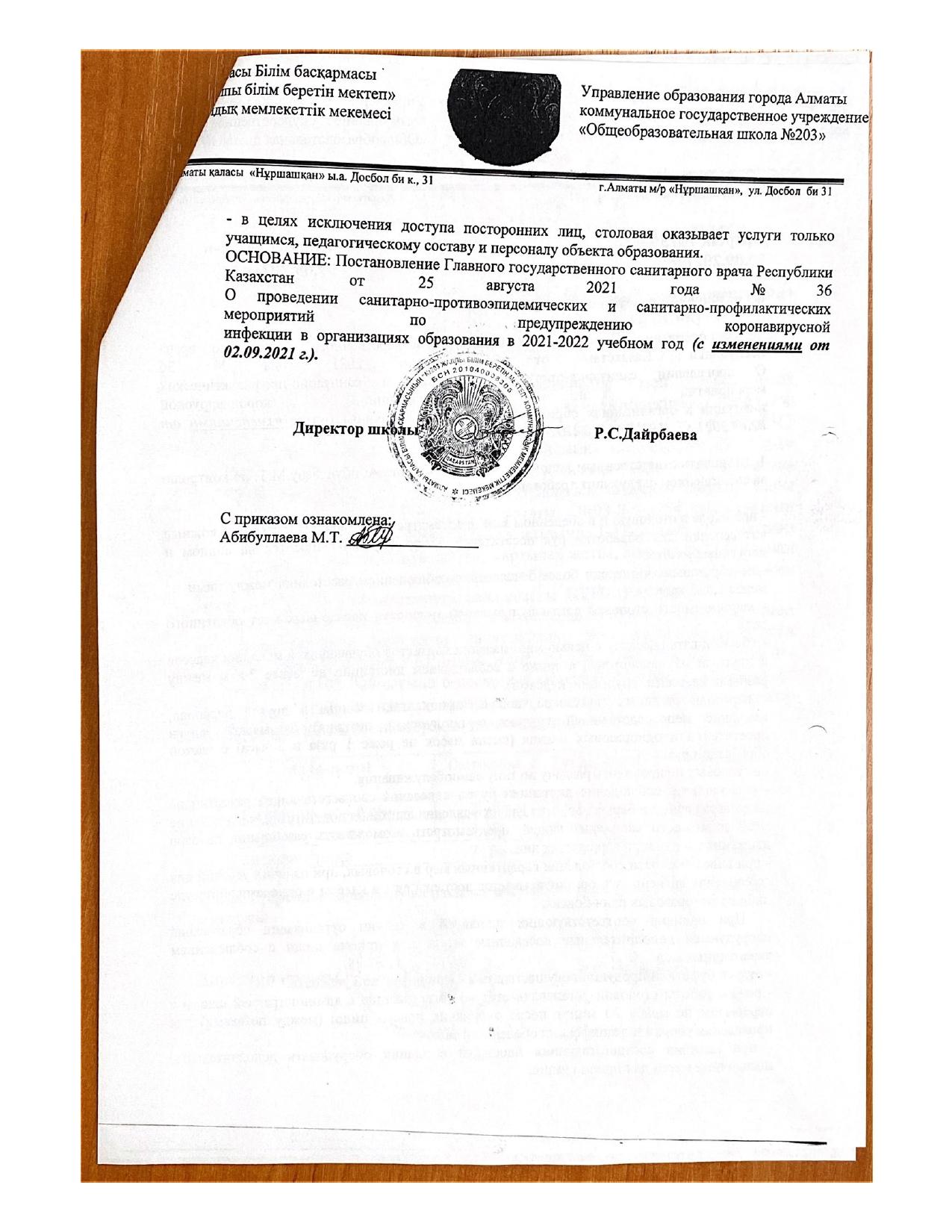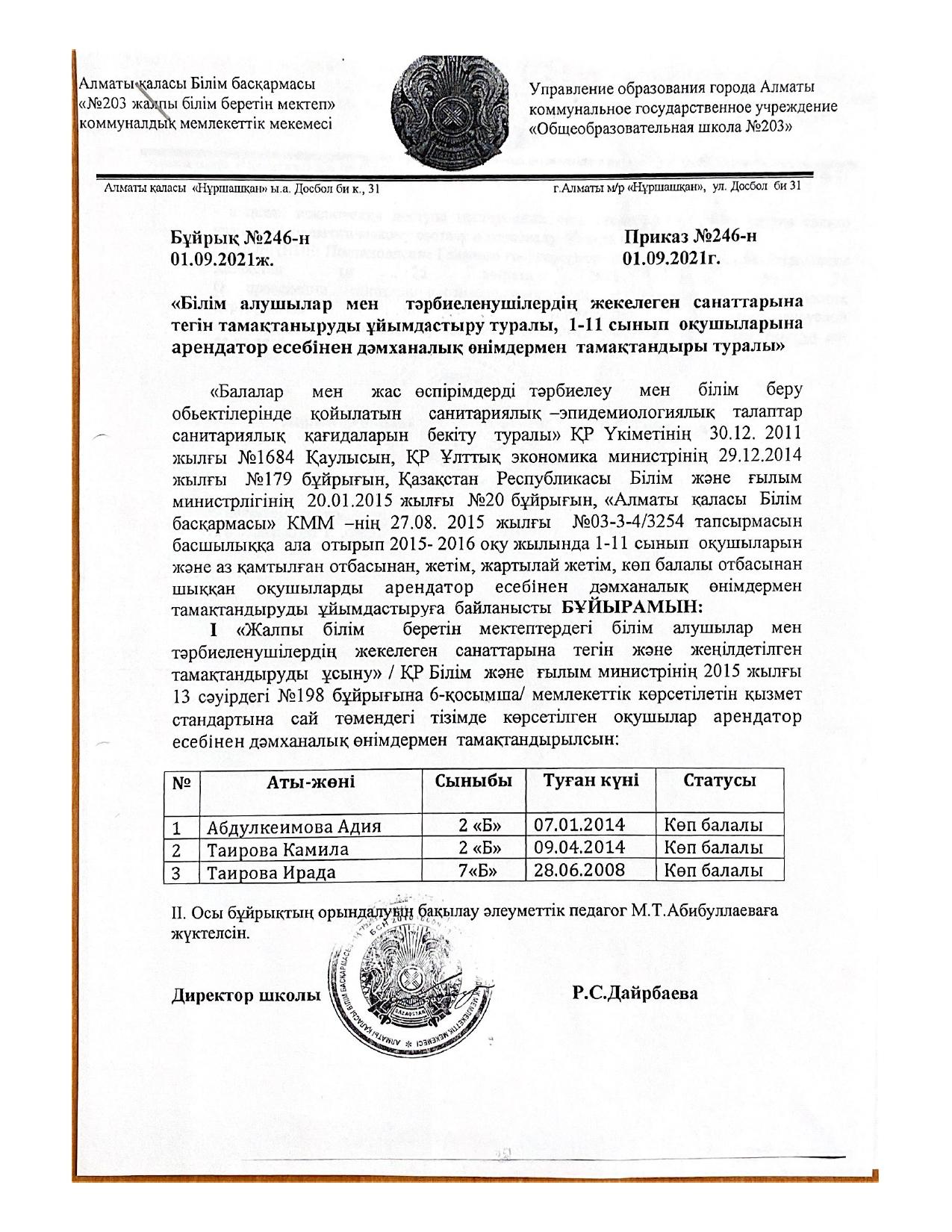 Арендатор есебінен тегін тамақпен қамтамасыз етілген оқушылар тізімі » "№203 жалпы білім беретін мектеп" КММ