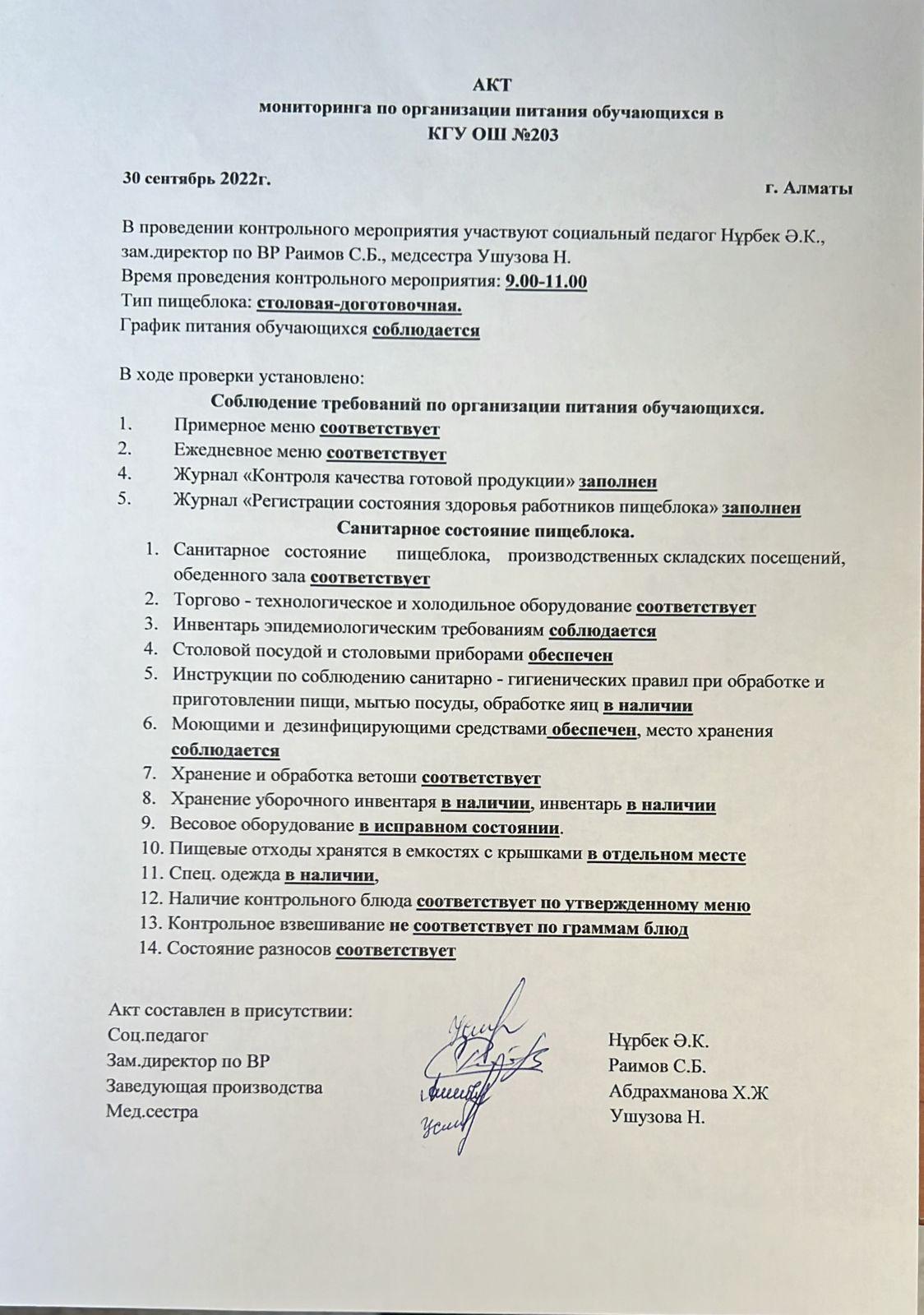 АКТ мониторинга » "№203 жалпы білім беретін мектеп" КММ