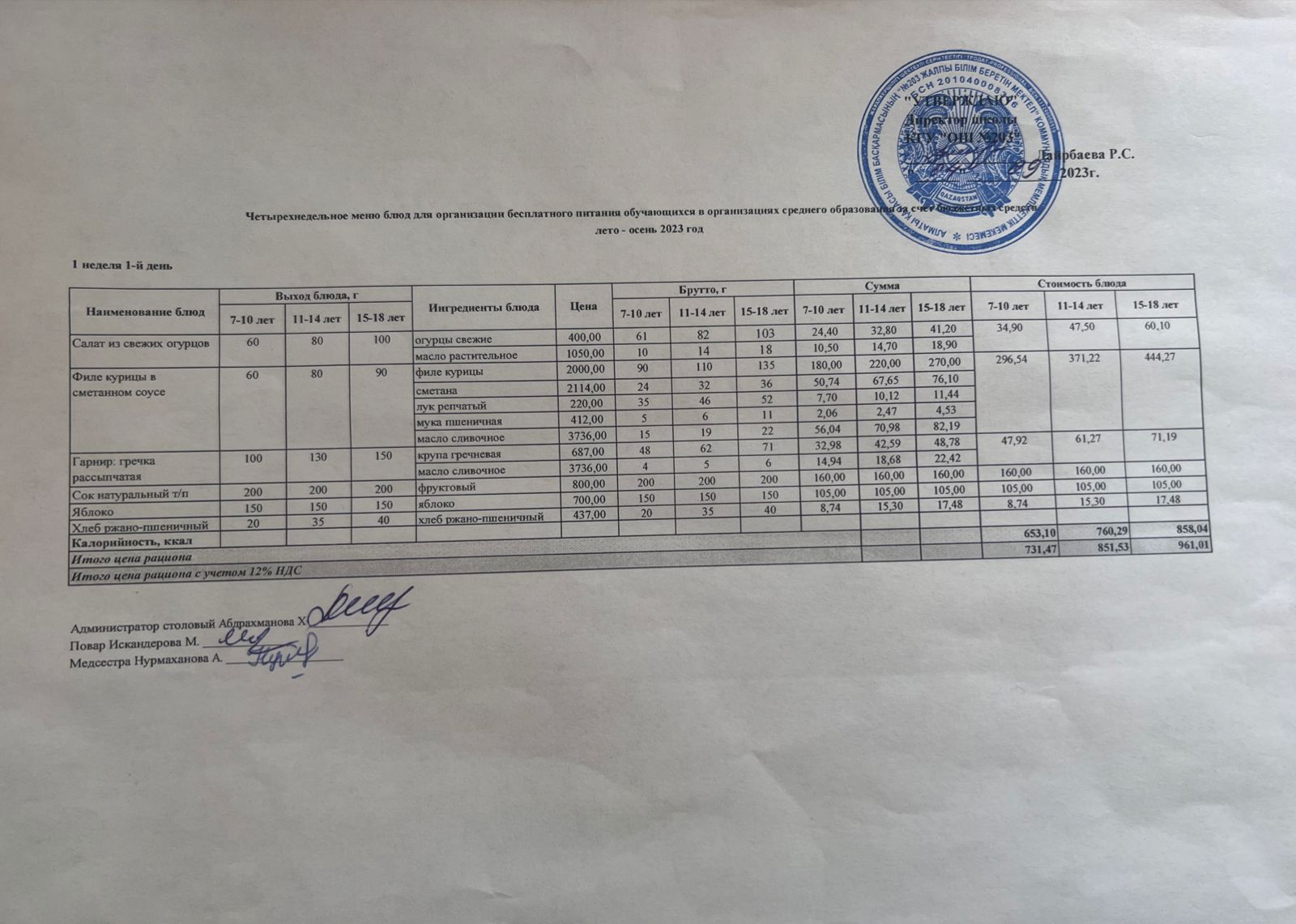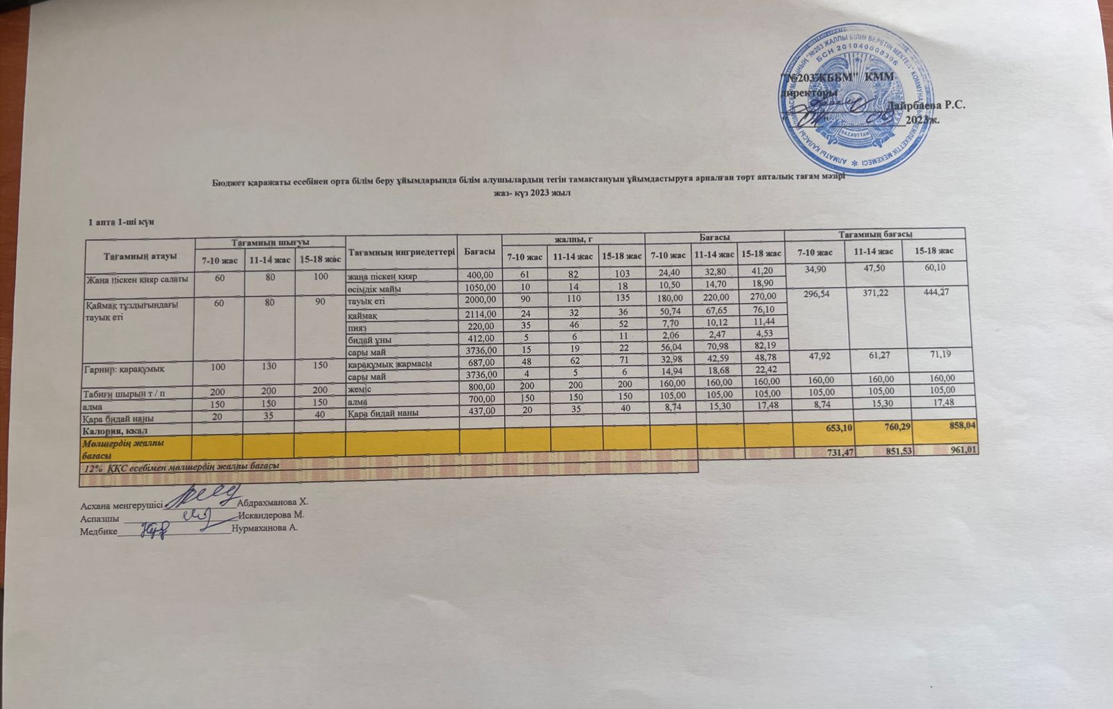 Күнделікті мәзір\Ежедневное меню » "№203 жалпы білім беретін мектеп" КММ