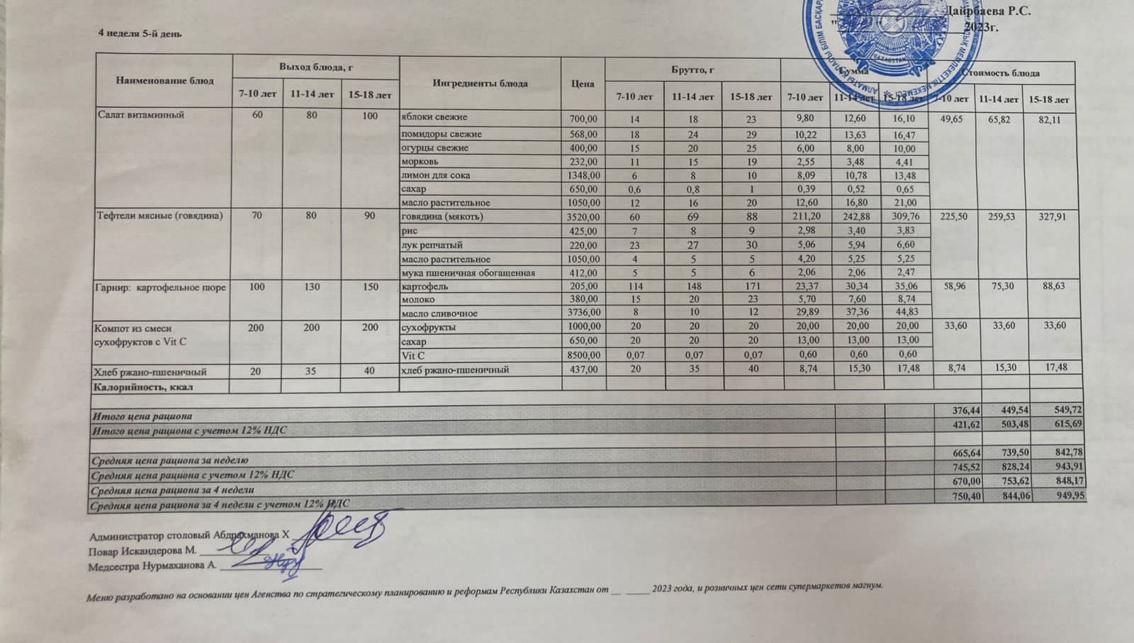 Күнделікті мәзір\Ежедневное меню » "№203 жалпы білім беретін мектеп" КММ